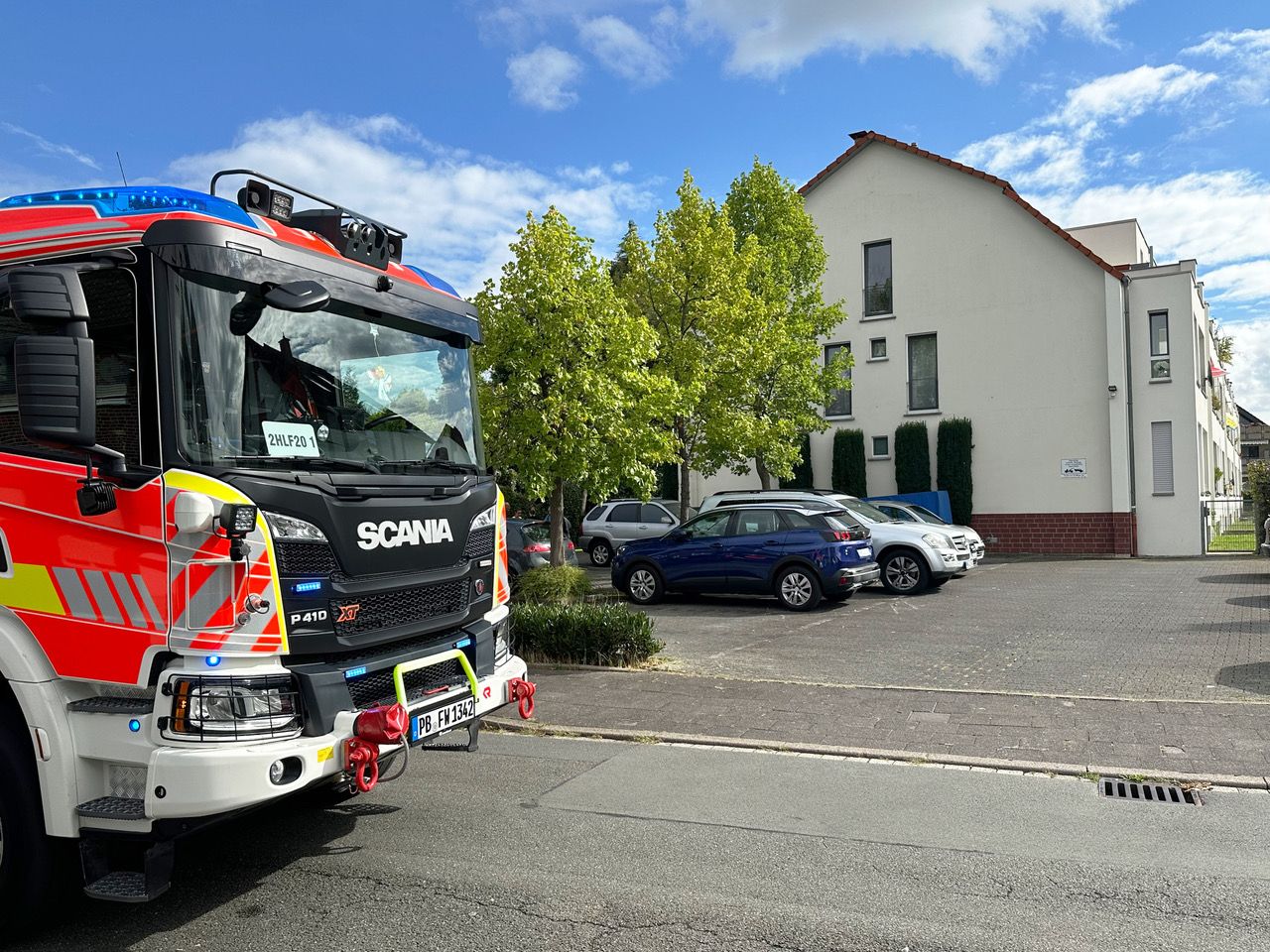 Mit zahlreichen Kräften rückte die Feuerwehr Paderborn am Montagvormittag zu einem gemeldeten Zimmerbrand in einem Mehrfamilien-Reihenhaus in der Karl-Sonnenschein-Straße im Paderborner Riemekeviertel aus.