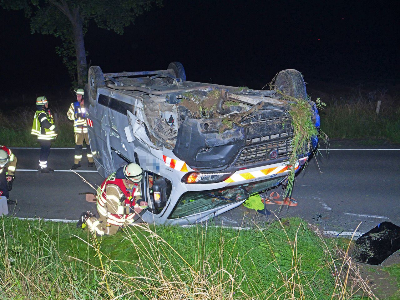 Bei einem schweren Verkehrsunfall auf dem Duhner Weg (Kreisstraße 27) ist in der Nacht zu Sonntag ein 53 Jahre alter Autofahrer schwer verletzt worden, als sein Transporter einen Baum streifte, sich überschlug und auf dem Dach liegen blieb.