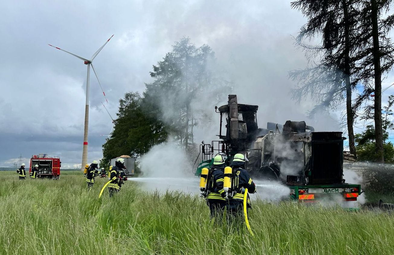 Zum Brand einer landwirtschaftlichen Maschine wurden die Einsatzkräfte der Löschgruppe Elisenhof am Mittwochnachmittag um 16.30 Uhr zu einem Waldstück am Ortsrand alarmiert.
