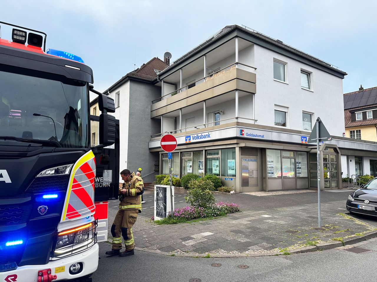 Erneuter Feuerwehreinsatz am Sonntagabend in einem Mehrfamilienhaus an der Ludwigstraße. Nachdem es dort Anfang April bereits einen Kellerbrand gegeben hatte, der rasch zu einer Verrauchung des Treppenhauses geführt hatte, brannte es diesmal im Eingangsbereich des Treppenhauses.