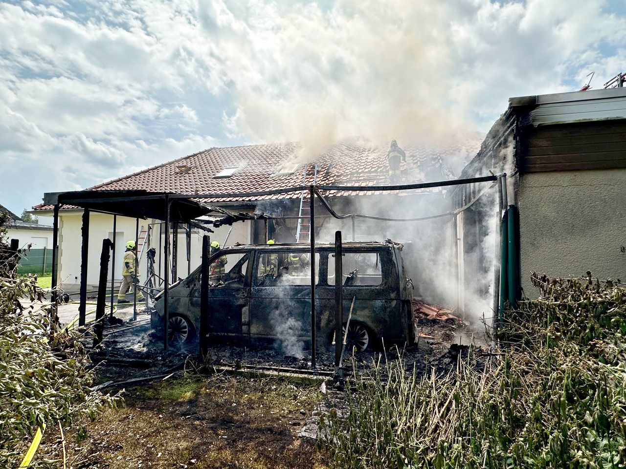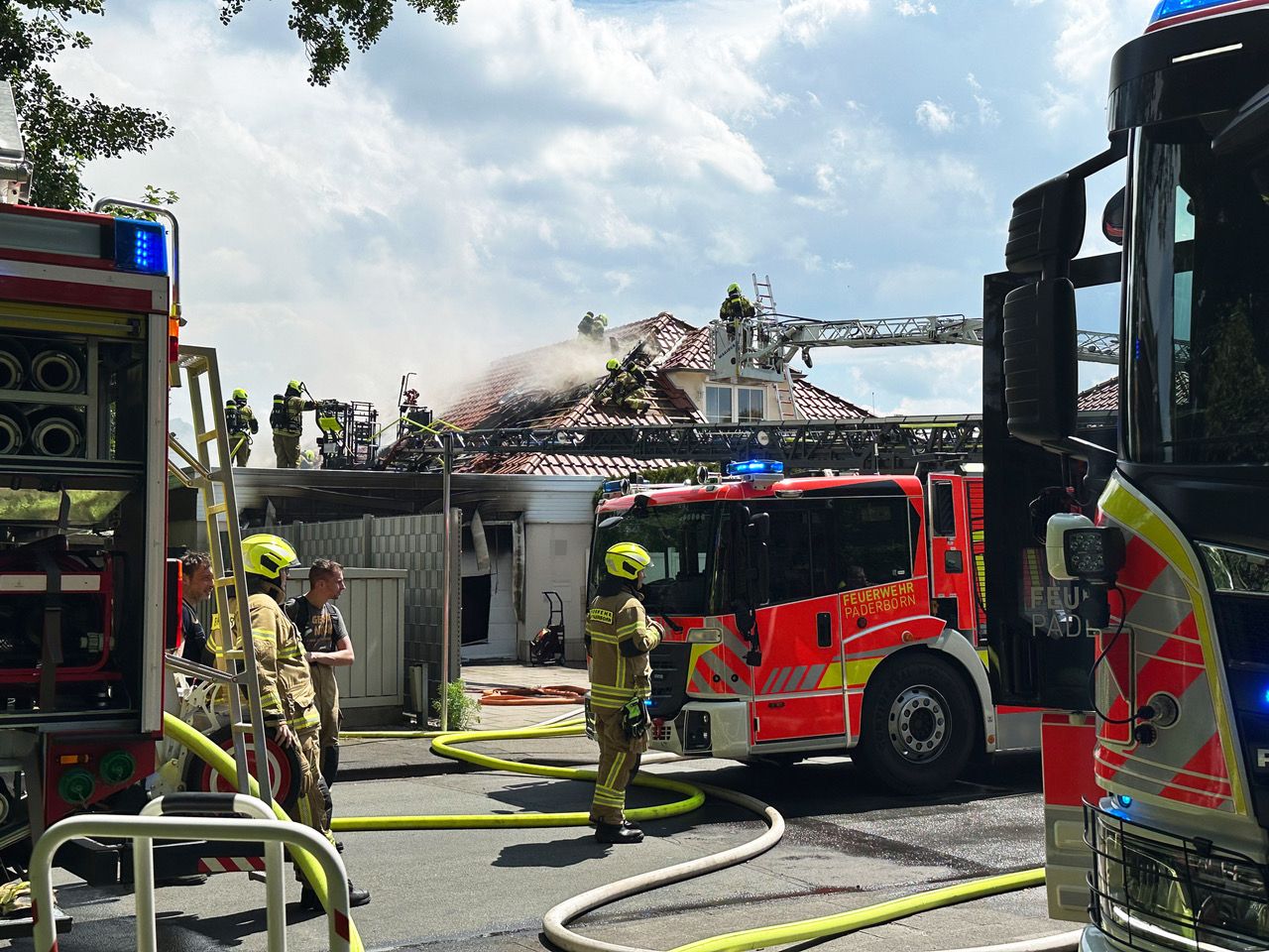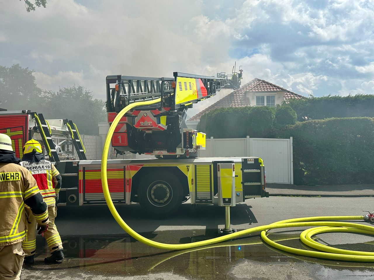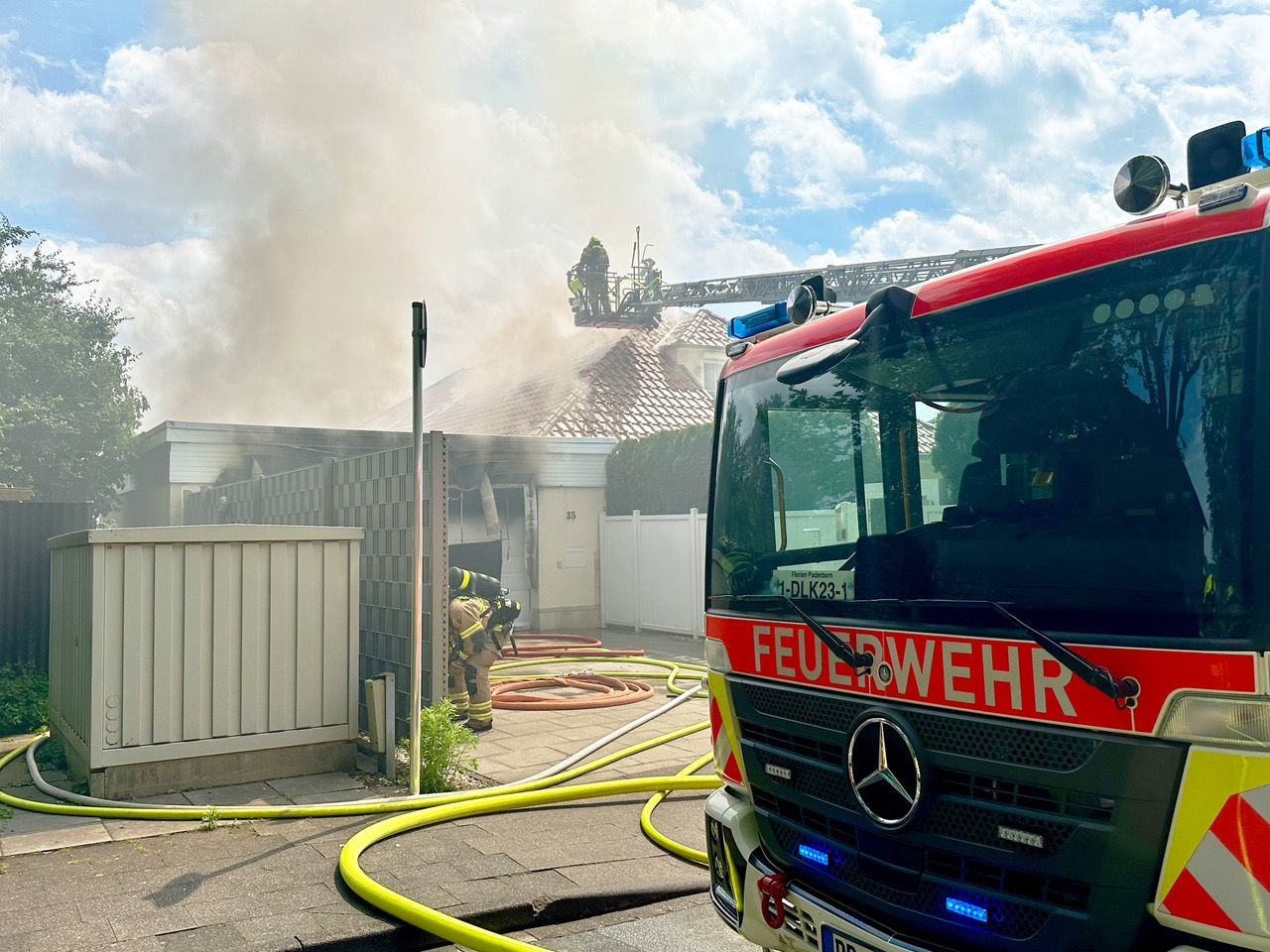 Bei einem Großbrand in Gesseln sind am Donnerstagmittag zwei Personen verletzt worden. Außerdem entstand Sachschaden in vermutlich sechsstelliger Höhe an einem Bungalow an der Ecke Elser Heide/Obernheideweg.