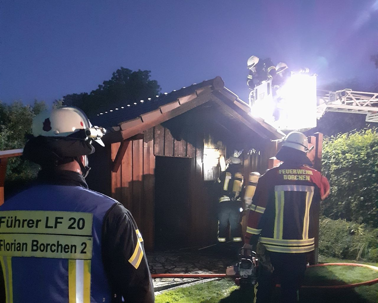 Gartenhütte am Westfalenweg steht am frühen Morgen in Flammen.