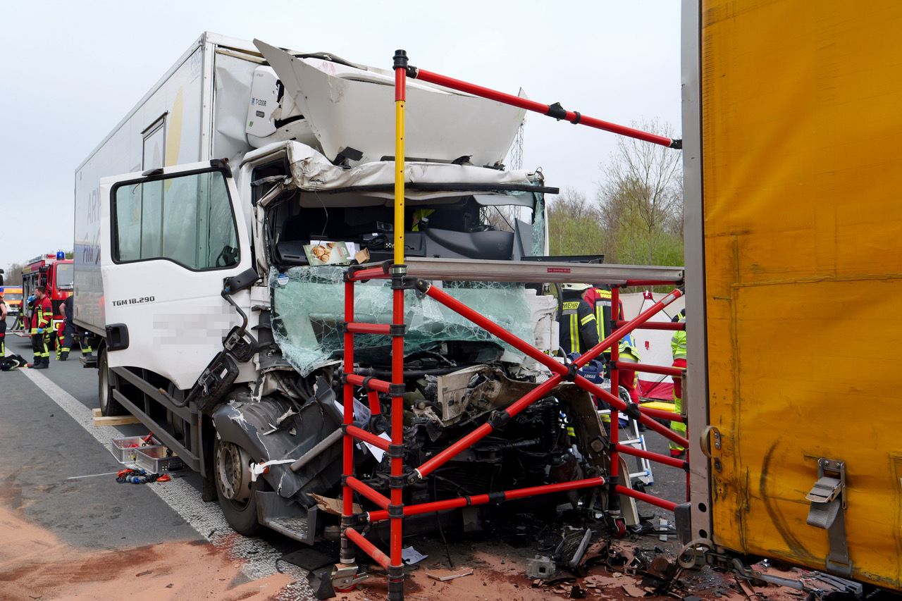 Bei einem schweren Verkehrsunfall auf der A 33 kollidierten am Montag in Höhe der Gemeinde Borchen ein Sattelzug, ein Lastwagen und ein mit zwei Personen besetzter Pkw. Drei Personen waren massiv eingeklemmt und mussten von Einsatzkräften der Feuerwehr Borchen mit Hilfe von hydraulischen Werkzeugen befreit werden. Für eine Beifahrerin im Pkw kam jede Hilfe zu spät. Sie erlag noch am Unfallort ihren schweren Verletzungen.