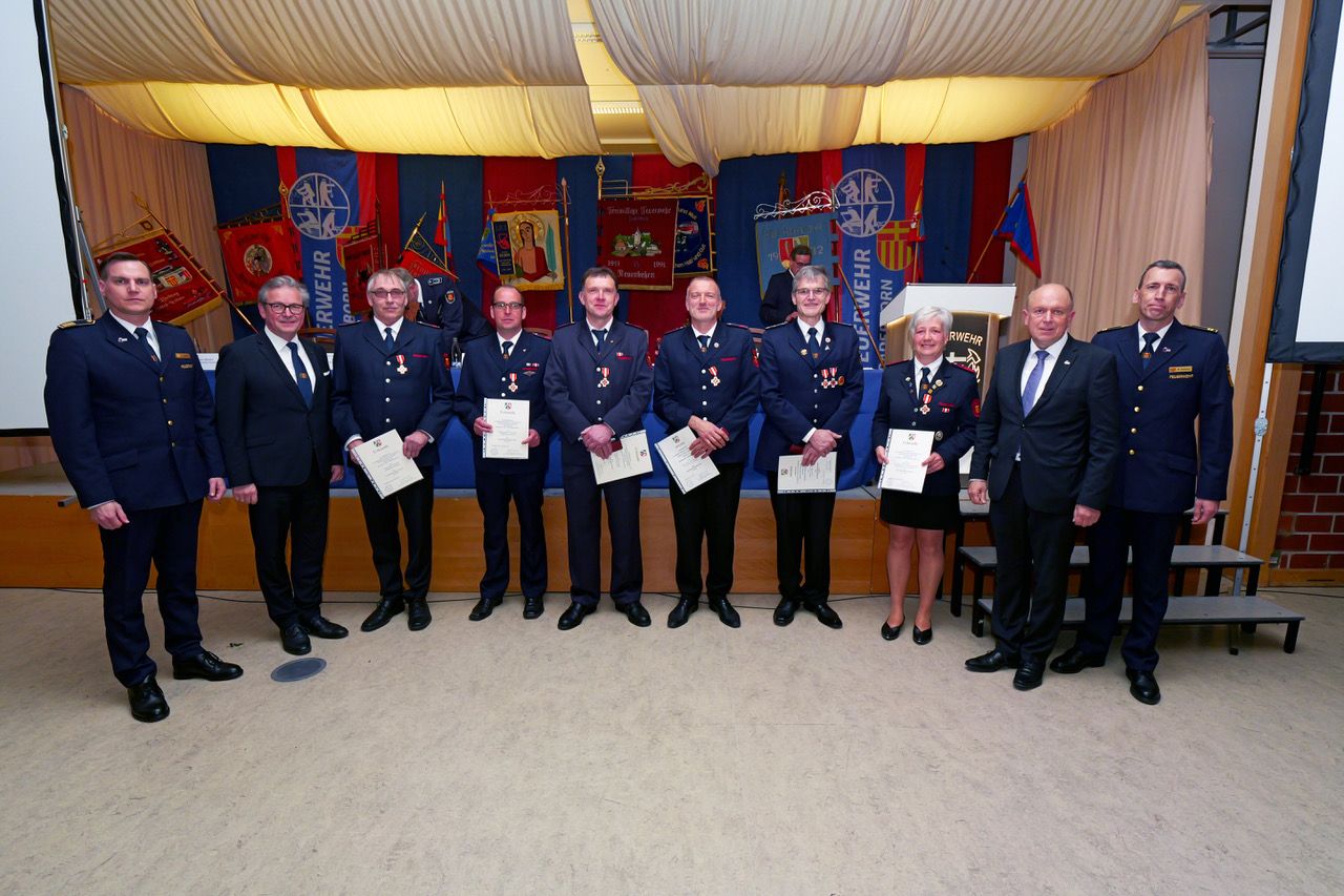 Bilanz eines Jahres mit vielen Herausforderungen zogen die 1.066 Mitglieder der Feuerwehr Paderborn bei der Jahreshauptversammlung 2023 in der Beketalhalle im Stadtteil Neuenbeken.