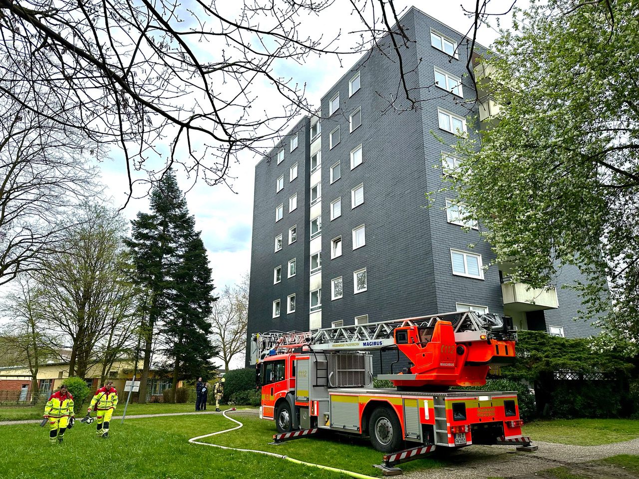 Mit vier Löschfahrzeugen zwei Drehleitern, zwei Rettungswagen und dem Hövelhofer Notarzt rückte die Feuerwehr Paderborn am Freitagmittag in die Stadtheide aus.