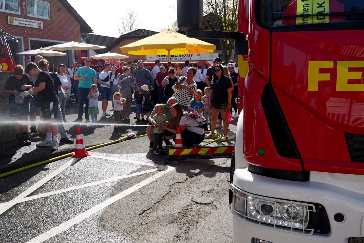 Damit hatten die 36 aktiven Feuerwehrleute des Borchener Löschzuges nicht gerechnet. Der erste Sommertag des Jares lockte weit mehr Besucher zur Geburtstagparty am Feuerwehrgerätehaushaus, als die Planer kalkuliert hatten.