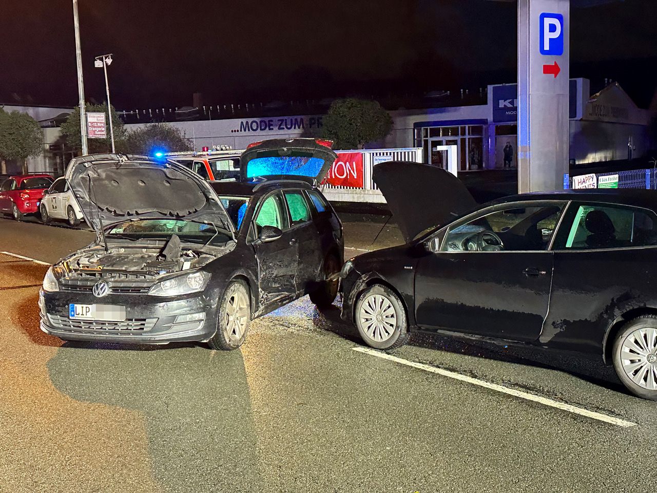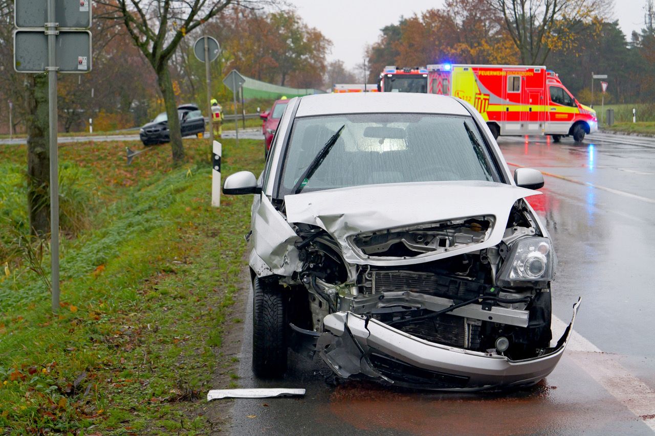 Bei einem Zusammenstoß von zwei Personenwagen auf der Neuhäuser Straße am frühen Montagmorgen blieben alle drei Insassen unverletzt.