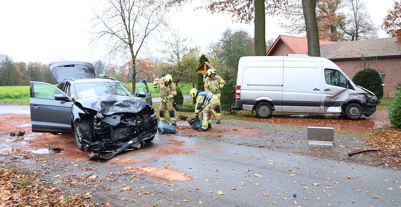 Auto prallt in Delbrück-Lippling seitlich gegen einen Kleintransporter. Fahrerin verletzt ins Krankenhaus gebracht.