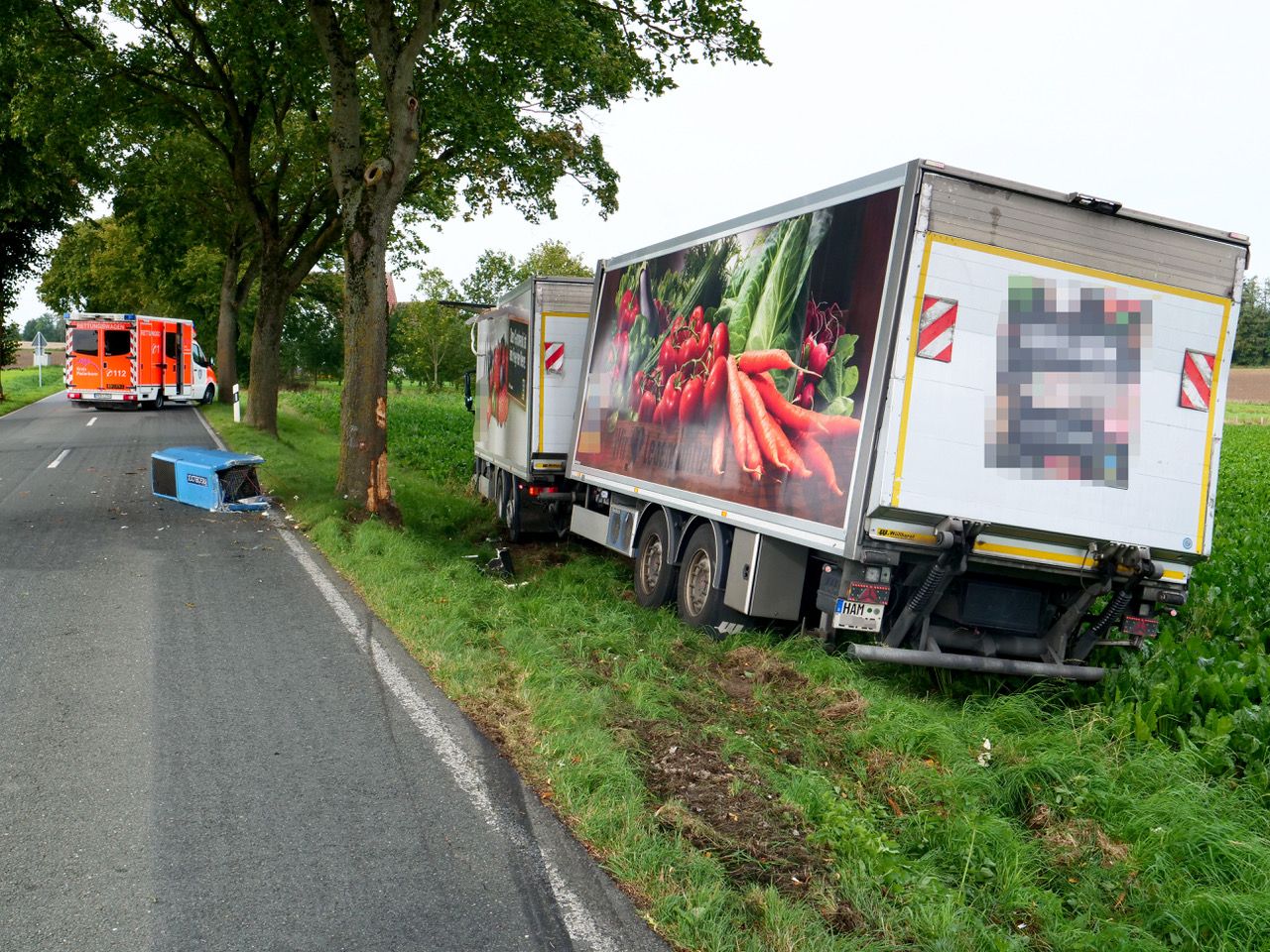 Mit dem Einsatzstichwort "LKW vor Baum, Person eingeklemmt" wurden die Einsatzkräfte des Löschzuges Haaren, des Rettungsdienstes und der Polizei am Freitagmorgen zur Landstraße 754 zwischen Haaren und Büren gerufen.