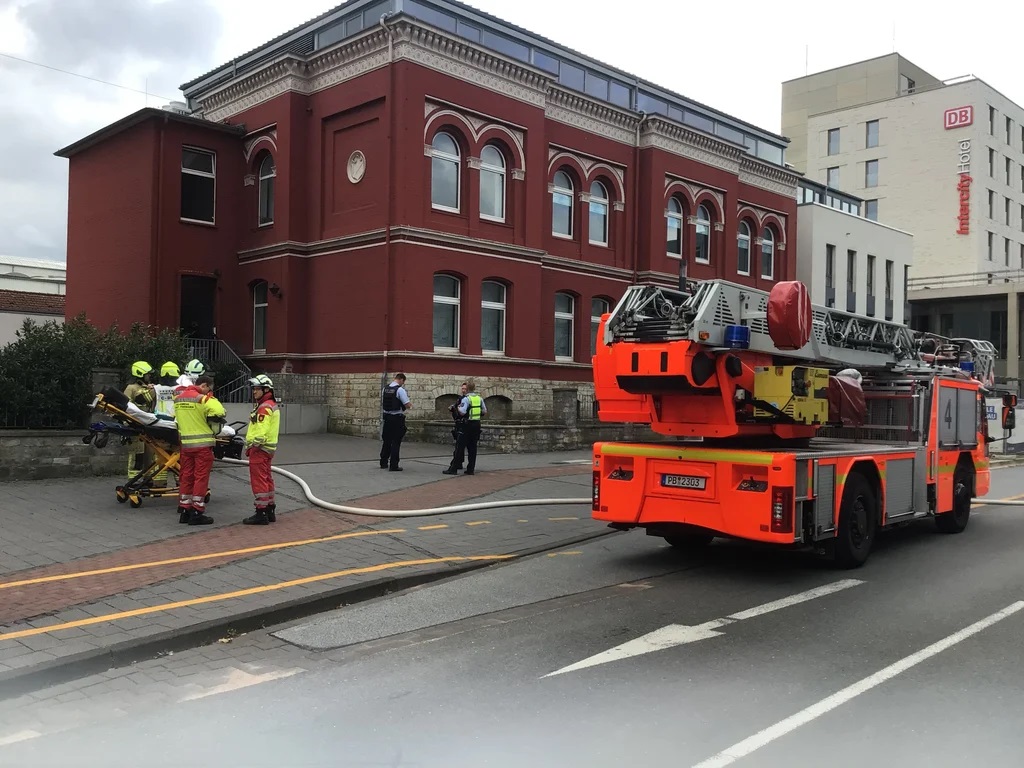 Feuerwehr rückt zu „Feuer mit Menschenleben in Gefahr“ aus. Lokführer bemerkt Kellerbrand am Paderborner Hauptbahnhof.