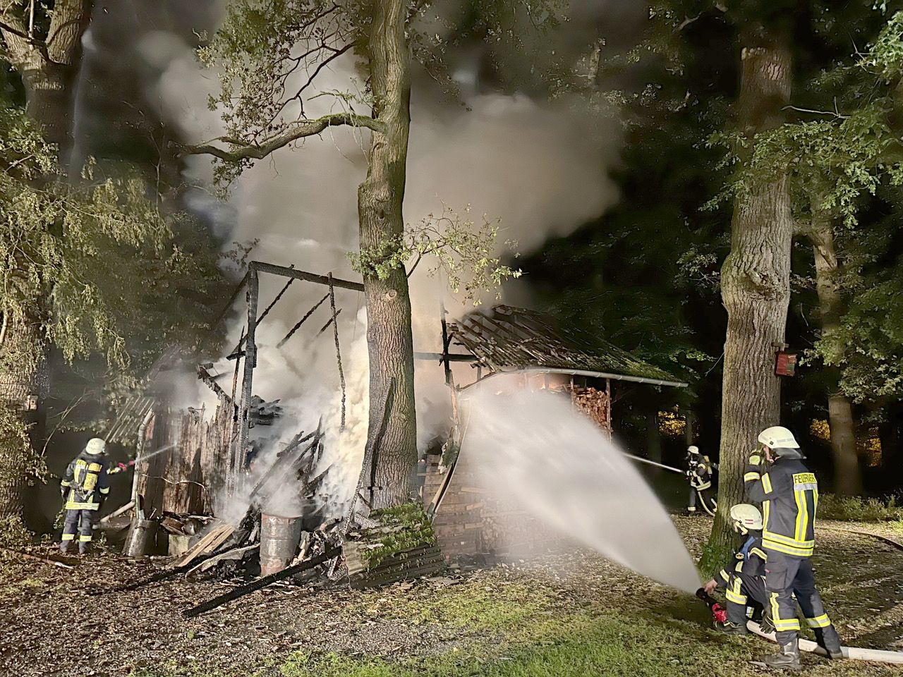 45 Wehrleute in der Nacht zu Sonntag im Einsatz. Holzlager in Salzkotten-Scharmede in Flammen.
