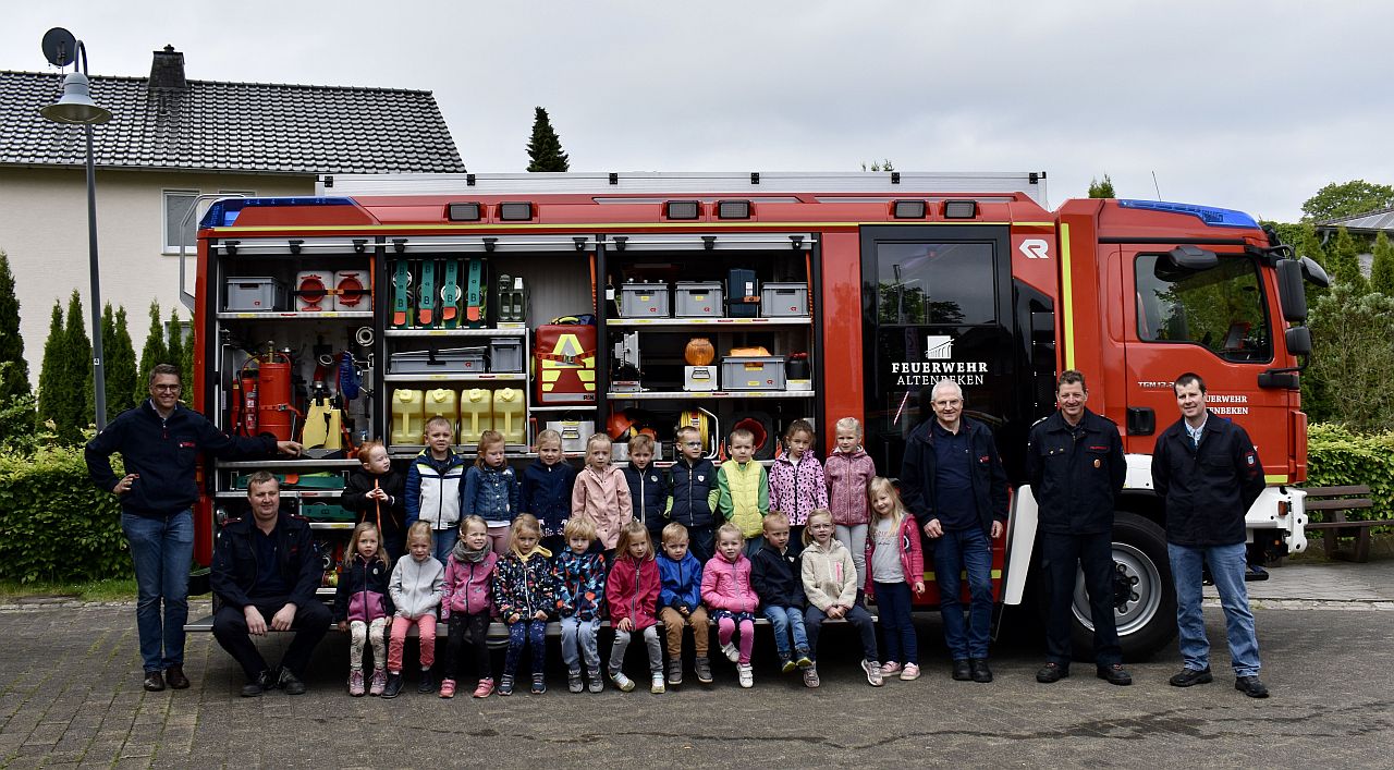 Was tun, wenn es brennt? Brandschutzerziehung im Familienzentrum und DRK Kindergarten Schwaney.