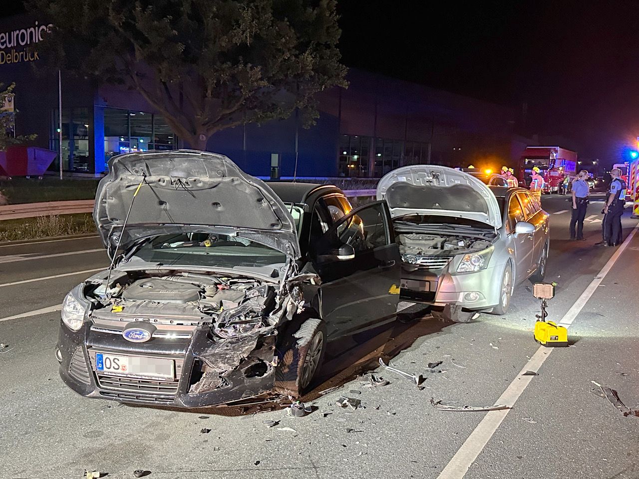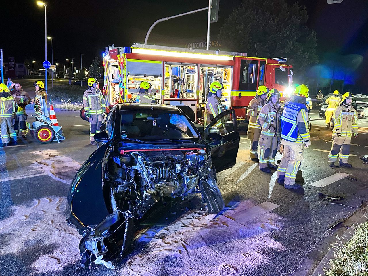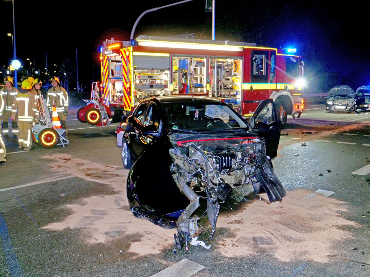 Vier Männer wurden in der Nacht zu Donnerstag bei einem schweren Verkehrsunfall auf der Kreuzung Paderborner Straße (B 64) und Boker Straße verletzt, einer von ihnen schwer. An der Kollision, die sich gegen 23.10 Uhr ereignete, waren insgesamt vier Personenwagen beteiligt.