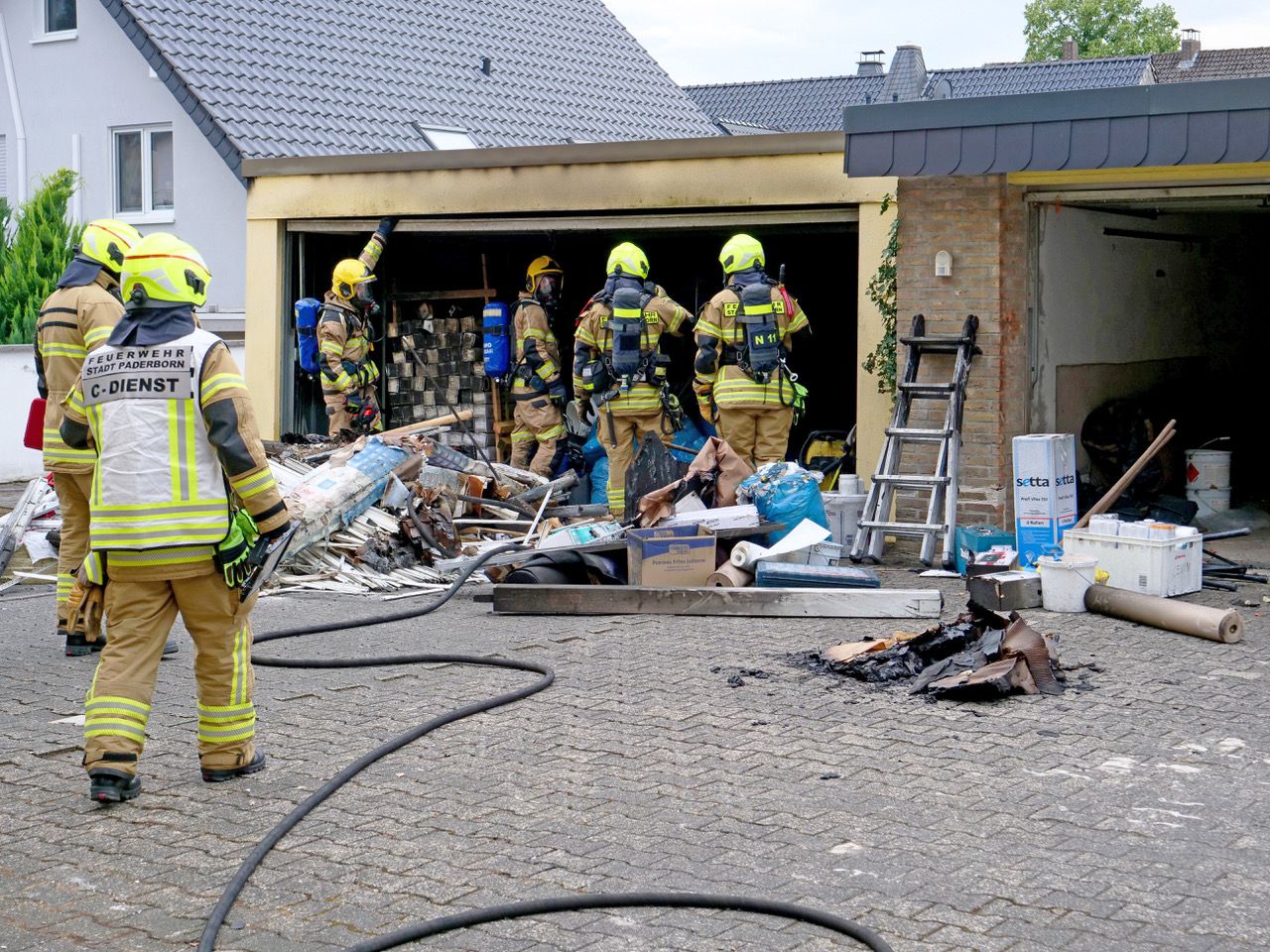 Zu einem Garagenbrand rückten am Samstagabend die Feuerwehr Paderborn der englische Defence Fire & Rescue Service in den Paderborner Stdatteil Sennelager aus. Hinter einem Mehrfamilienhaus an der Bielefelder Straße war eine Garage, die als Lagerraum genutzt wurde, in Brand geraten.