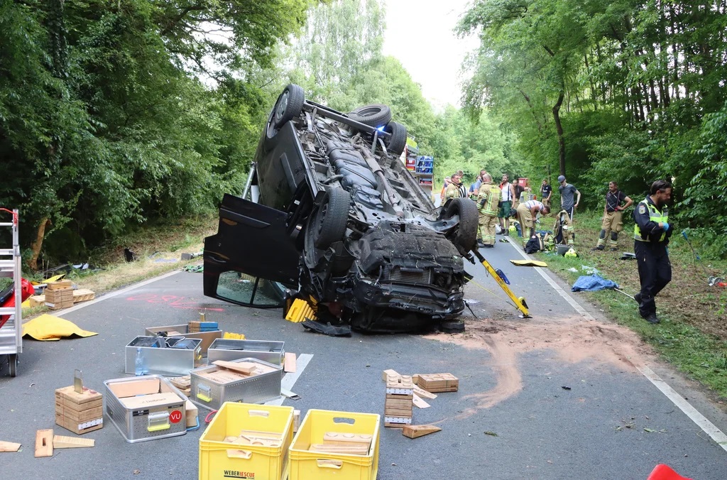 Alleinunfall auf Schöninger Straße – Beifahrer eingeklemmt und schwerstverletzt. Befreiungsaktion der Feuerwehrkräfte dauert über eine Stunde. Rund 50 Feuerwehrkräfte aus Lippling, Delbrück und Westenholz eilten an die Unglücksstelle.