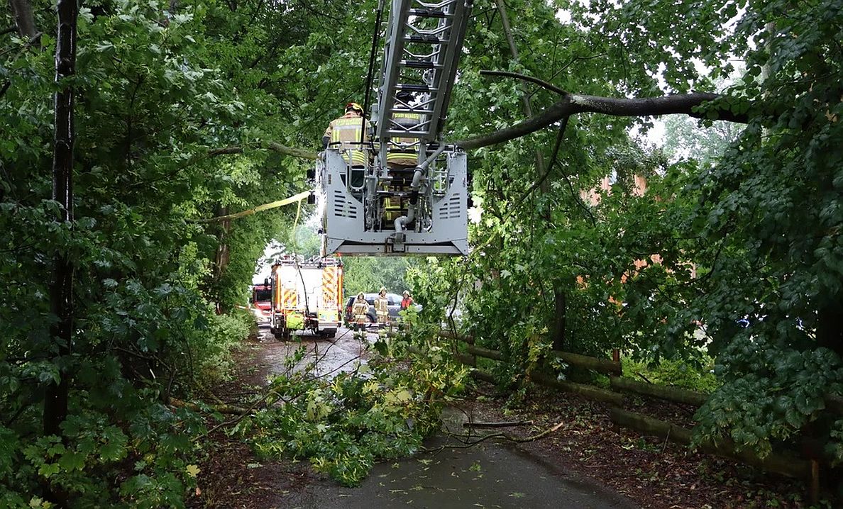 Sturmtief Lambert beschert Feuerwehr Delbrück vier Unwetter-Einsätze. Über 50 Liter Regen fallen je Quadratmeter in Delbrück.