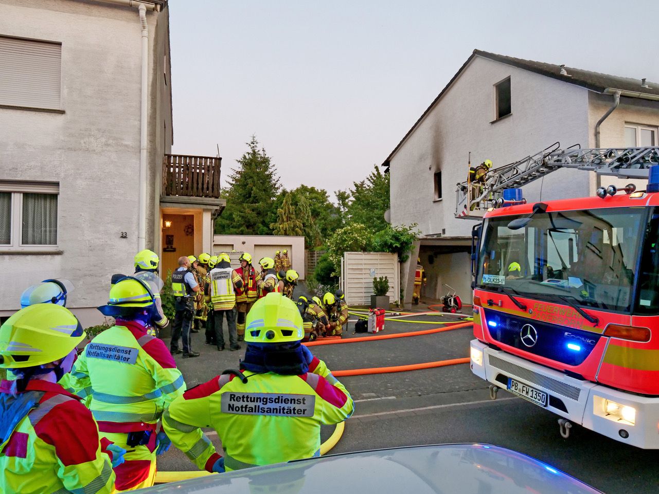 Hohen Sachschaden löste am Samstagabend ein Wohnungsbrand in einem Mehrfamilienhaus in der Paderborner Südstadt aus. Nachbarn entdeckten eine starke Rauchentwicklung auf der Gebäuderückseite. Schon bald schlugen meterhohe Flammen aus den geborstenen Scheiben einer Wohnung im Obergeschoss und griffen auf die Dacheindeckung über.