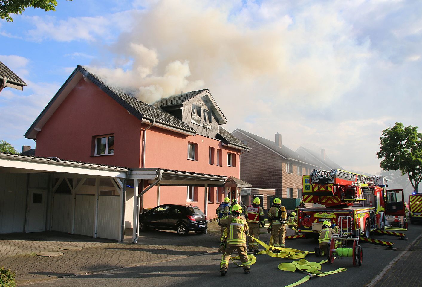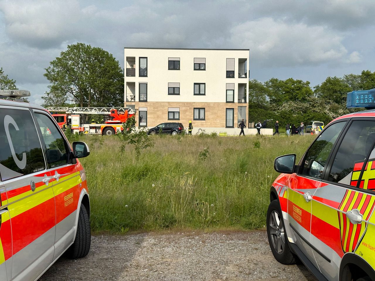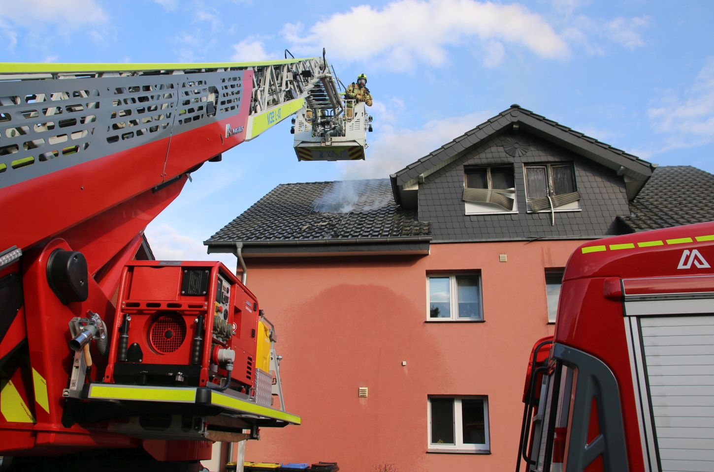 Balkonbrand in Paderborn endet glimpflich. Feuerwehr im Einsatz am Borkumer Weg.