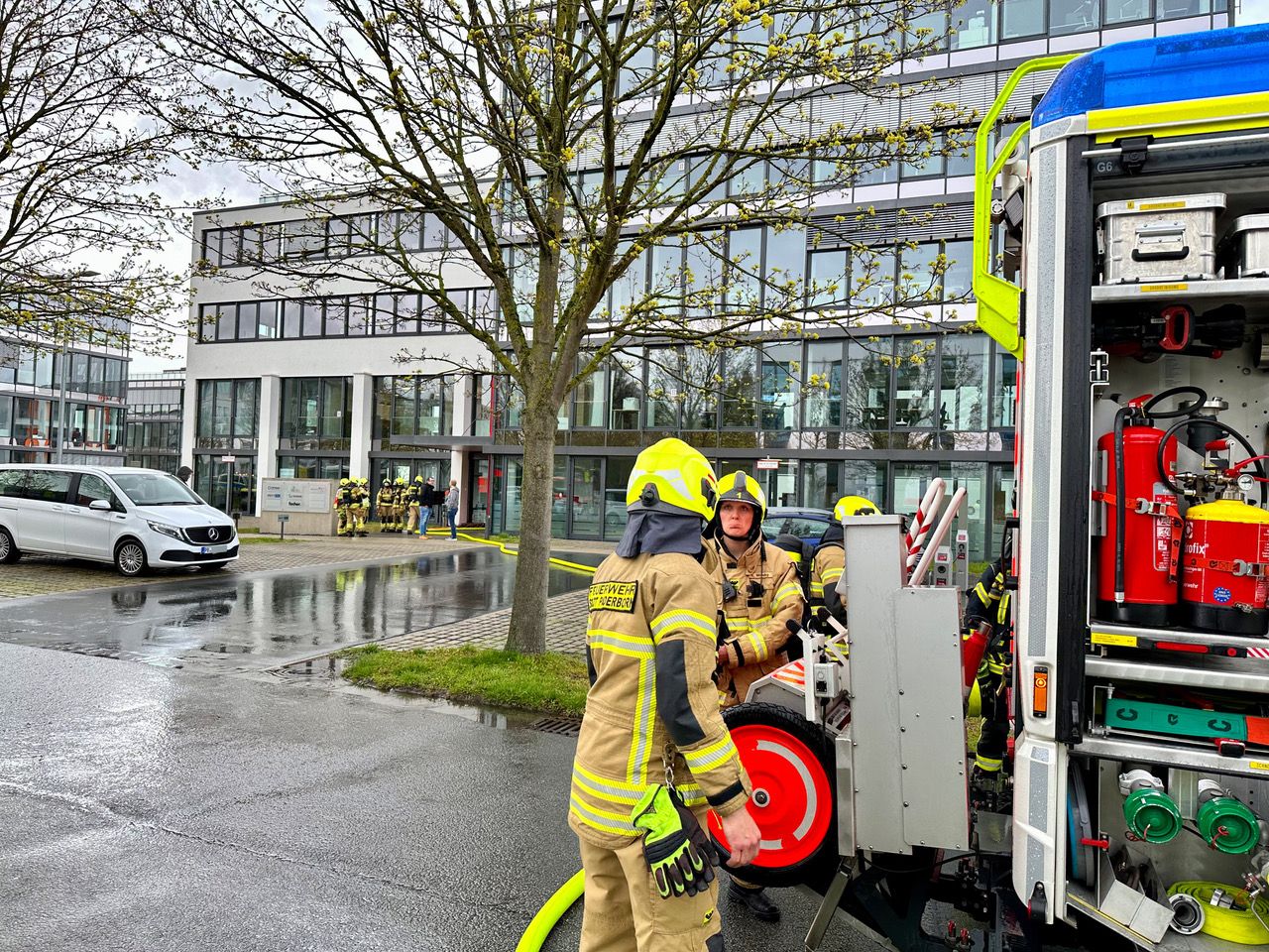 Rund 35 Kräfte der Feuerwehr Hövelhof löschten am Freitagnachmittag einen Brand in einer Photovoltaikanlage beim Hövelhofer Möbelhersteller Formaplan an der Gehastraße.