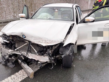 Mit sechs Großfahrzeugen rückte die Feuerwehr Bad Wünnenberg am Montagmittag zu einem witterungsbedingten Verkehrsunfall im Autobahnkreuz Bad Wünnenberg-Haaren aus. Ein automatisiertes Notrufsystem hatte gegen 13.50 Uhr auf der Richtungsfahrbahn Osnabrück der Autobahn 33 einen Unfall eines mit zwei Personen besetzten BMW gemeldet.