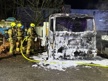 Im Gewerbegebiet im Stadtteil Sennelager ist in der Nacht zu Sonntag ein Lkw mit Ladekran komplett ausgebrannt. Der Wagen stand auf einem unbefestigten Abstellplatz an der Max-Planck-Straße.