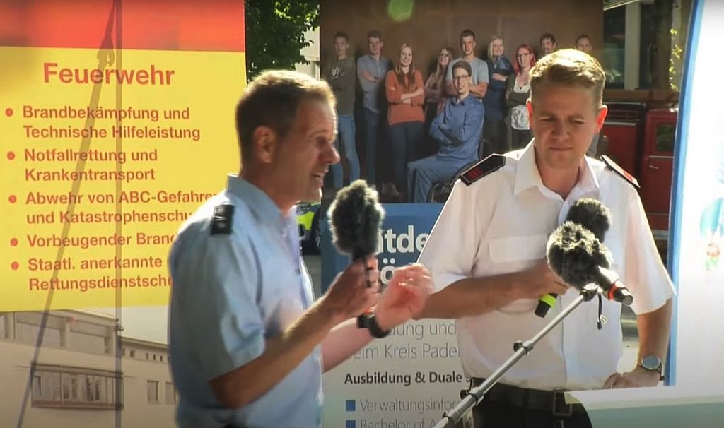 Unfall mit Rettungskette im Live-Stream, Feuerwehr, Polizei und Rettungsdienst auf dem Maspernplatz, im Rahmen der Verkehrssicherheitstage an den Paderborner Berufskollegs.