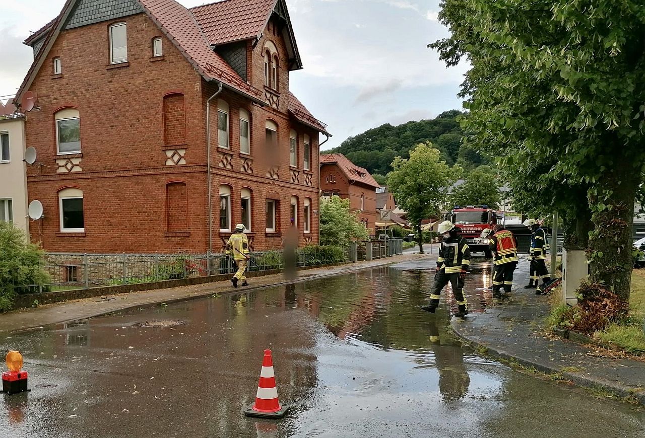 Nach kurzen, aber heftigen Regenfällen musste die Feuerwehr Altenbeken am Montagabend zu überfluteten Straßen und vollgelaufenen Kellern ausrücken. Menschen wurden nicht verletzt.