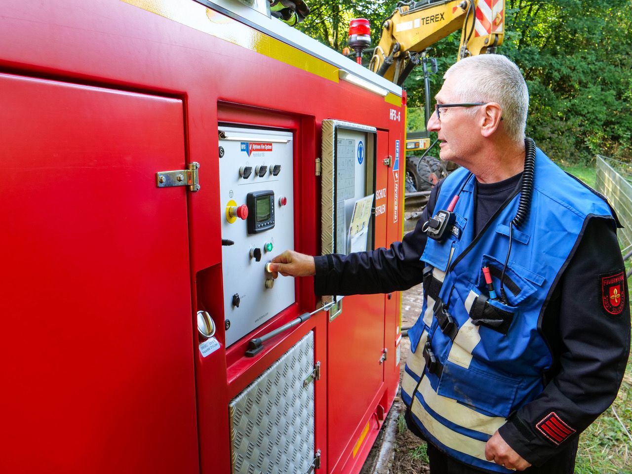 Auf Anforderung des Landes rückt am Samstag das Hochleistungs-Feuerlöschsystem (HFS), das an der Kreisfeuerwehrzentrale in Büren-Ahden stationiert ist, in das Hochwassergebiet im Raum Euskirchen aus.