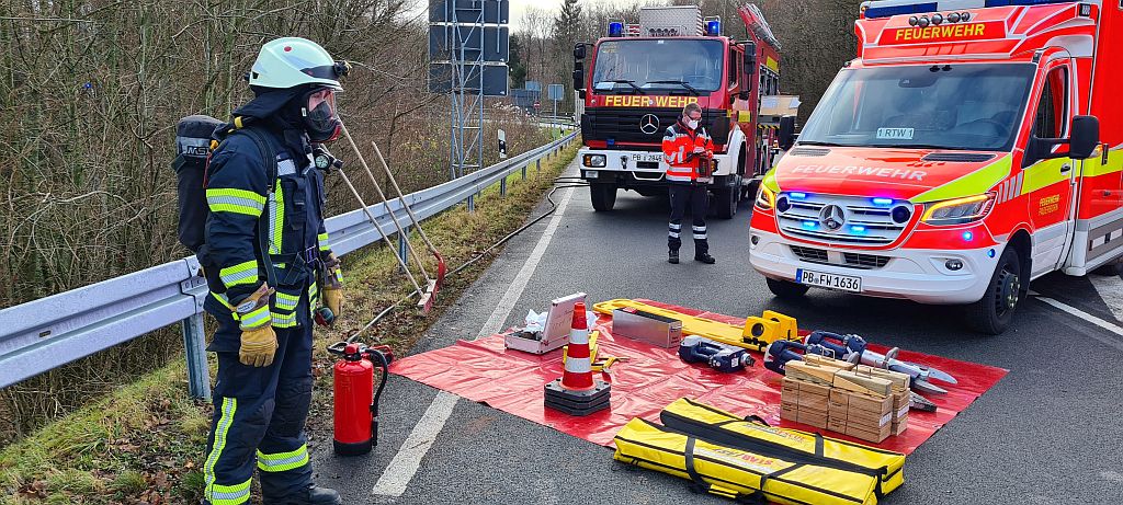 Zwei verletzte Personen und zwei Autos mit Totalschaden sind das Ergebnis eines Verkehrsunfalls am heutigen Donnerstagvormittag. Der Unfall ereignete sich gegen 11 Uhr im Kreuzungsbereich der L818 und der Autobahnabfahrt Etteln in Fahrtrichtung Brilon, woraufhin der Löschzug Kirchborchen, zwei Rettungswagen aus Borchen und Paderborn, ein Notarzt aus Salzkotten und die Autobahnpolizei alarmiert wurden.