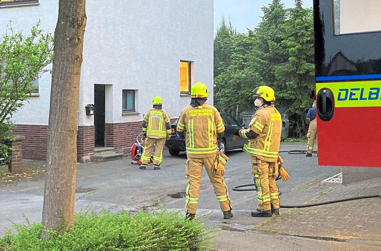 Während eines Dienstabends: Einsatz in Ostenland in der Nähe des Feuerwehrgerätehauses. Feuerwehr rettet eine Person aus brennender Küche.