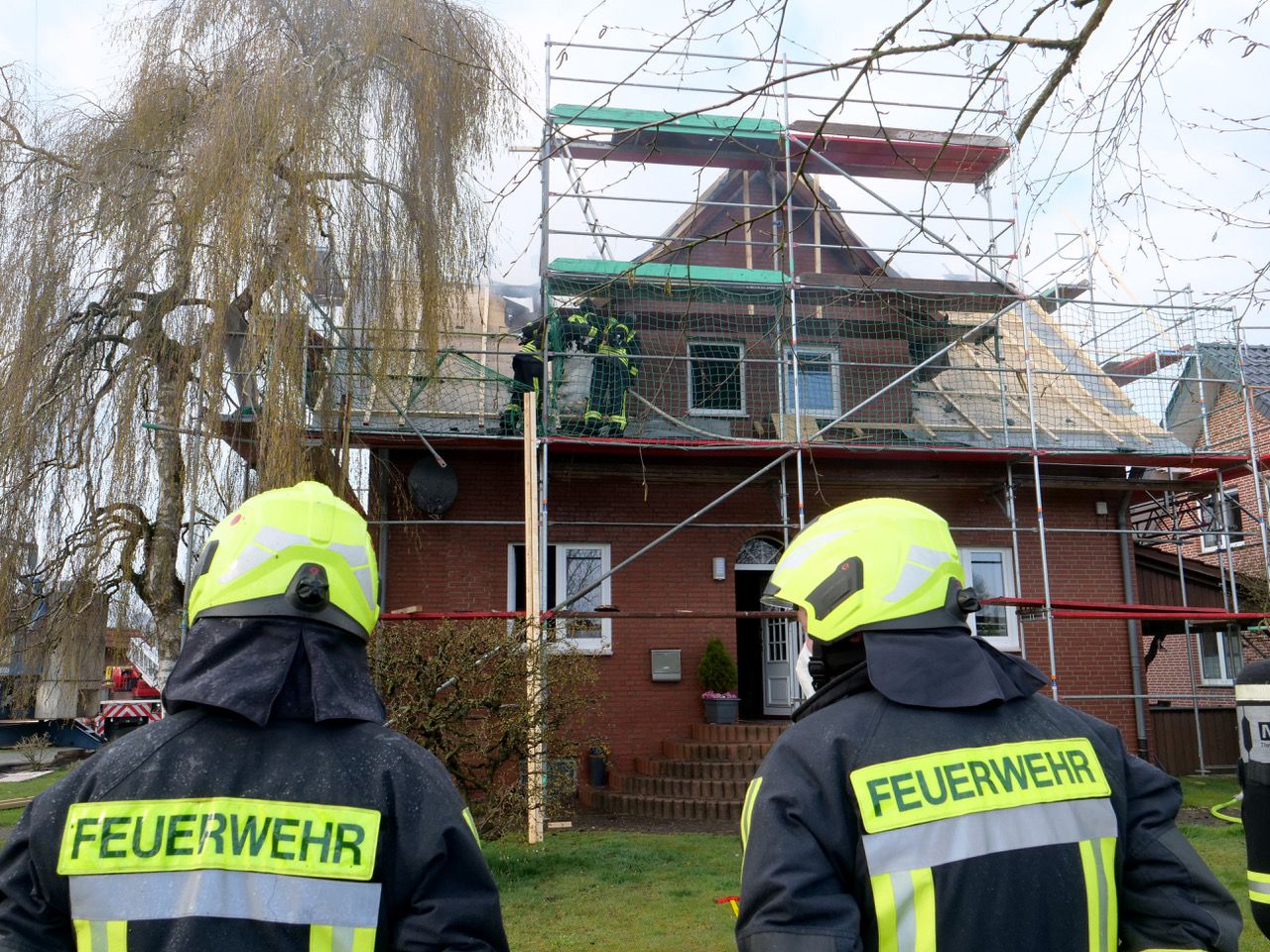 Im Hövelhofer Ortsteil Hövelriege brannte am späten Montagnachmittag der Dachstuhl eines Mehrfamilienwohnhauses auf dem Gelände eines ehemaligen Holzhandels und Sägewerks, das gerade umgebaut wird. Eine Bewohnerin hatte die Flammen noch rechtzeitig bemerkt und alarmierte die Feuerwehr.