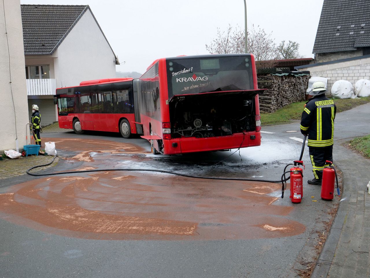 Rasches und entschlossenes Handeln von Nachbarn mit mehreren Pulverlöschern hat am Montagnachmittag den Schaden an einem brennenden Gelenkbus in Grenzen gehalten.