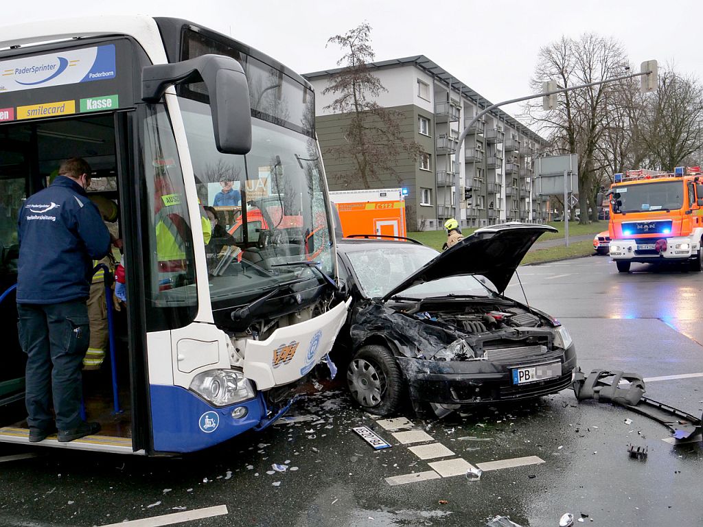 Beim Zusammenstoß eines Padersprinter-Busses mit einem Personenwagen sind am Mittwoch gegen 13.20 Uhr insgesamt drei Personen verletzt worden.