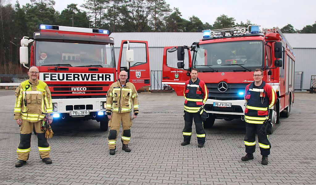 Wenn die Hövelhofer Feuerwehr ausrückt, wird in den kommenden vermutlich drei bis vier Wochen ein Löschfahrzeug mit dem Delbrücker Wappen auf den Türen darunter sein. Dies ist kein Versehen, sondern Folge eines Unfalls des Hövelhofer Hilfeleistungslöschfahrzeugs und Ergebnis jahrelanger guter Zusammenarbeit der beiden Nachbarfeuerwehren.