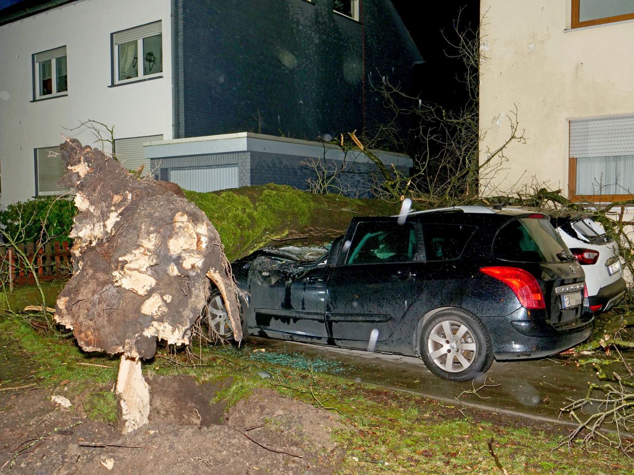Verletzte gab es bisher zum Glück nicht. Dennoch hatten die Einsatzkräfte die gesamte Nacht gut zu tun: Zahlreiche Mülltonnen flogen umher und verstreuten ihren Inhalt über Straßen und Fußwege, auch Bauzäune und Verkehrszeichen landeten auf den Straßen. Einige Dächer erlitten Sturmschäden. An weiteren Stellen wurden Autos durch Äste und Bäume beschädigt. Am Thuner Weg in Sennelager etwa stürzte ein Baum um und begrub zwei parkende Autos unter sich. Danach ramponierte der Baum den Firstbereich eines Mehrfamilienhauses. Am Rolandsweg verursachte gegen 1.55 Uhr eine vom Dach gewehte Photovoltaik-Anlage einen Schaden von rund 30.000 Euro. Teile der Anlage trafen dabei einen parkenden BMW. Die Trümmer der Anlagen wirbelten auf die Fahrbahn und den angrenzenden Schützenweg.