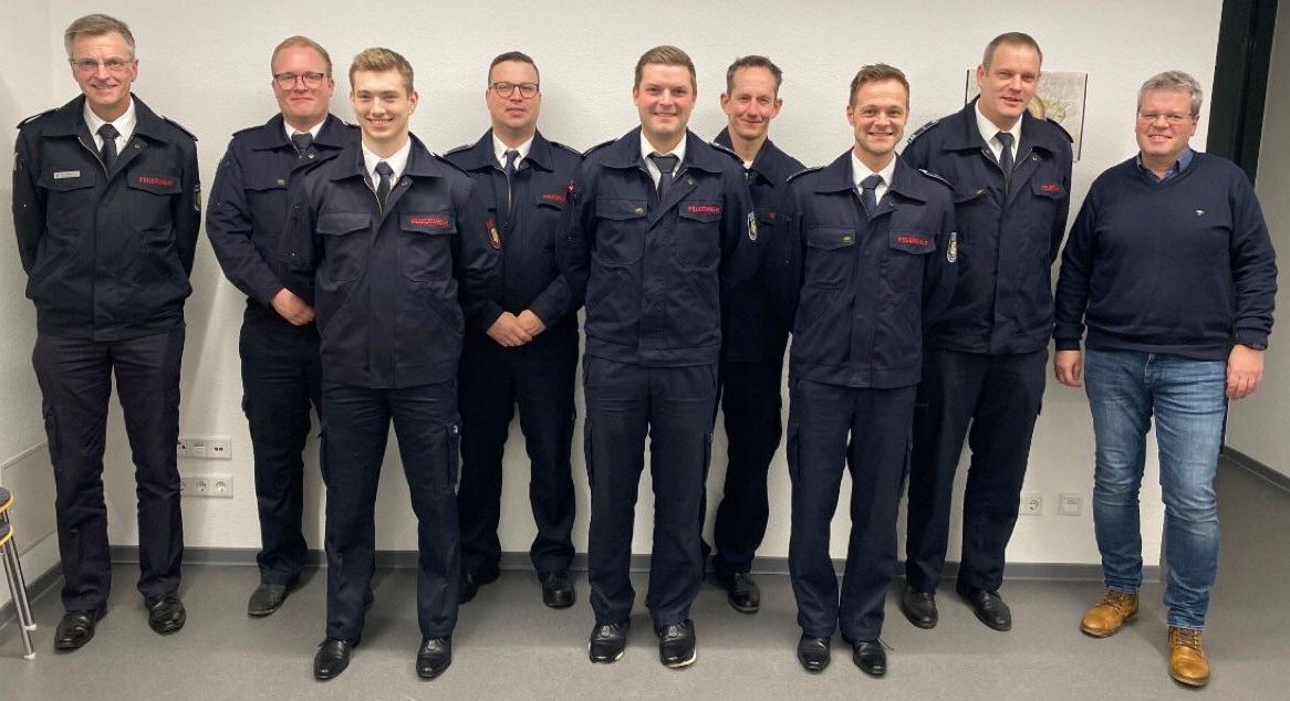 Leiter der Feuerwehr Bernd Lüke lobte die junge Truppe für ihre Einsatzbereitschaft. Wie in den Jahren zuvor konnte er abermals Zuwachs in der Einsatzabteilung begrüßen und gleichzeitig viele Beförderungen vornehmen. Besonders freute sich der Wehrführer allerdings, dem aktuellen Löschzugführer, Thomas Salmen, die Bestellungsurkunde für seine nächste Amtszeit überreichen zu dürfen. So bleibt der Brandoberinspektor für weitere sechs Jahre an der Spitze des Führungstrios um Markus Obermann und Jens Kniesburges.