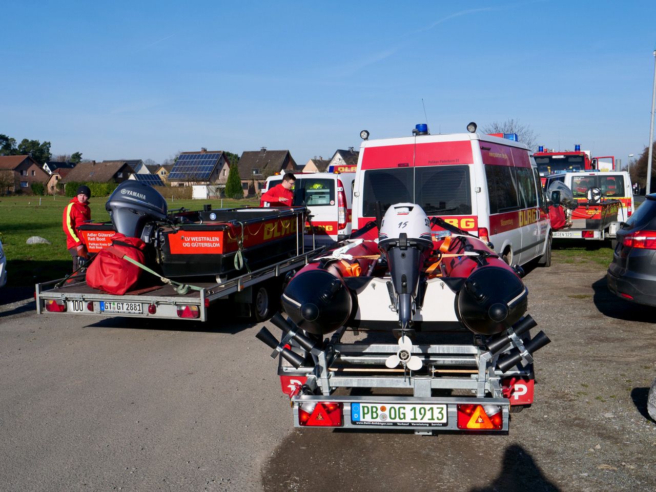 Auch am vierten Tag in Folge stand am Mittwoch die Reinigung dekontaminierter Wasserflächen im Fokus der Feuerwehr und weiterer Hilfsorganisationen. Nachdem die Paderborner Feuerwehr bereits in den vergangenen Tagen den Padersee, den Lippesee und den Nesthauser See von Rußniederschlägen des Großbrandes auf dem früheren Pfleiderer-Gelände in Rheda-Wiedenbrück am Samstagvergangener Woche befreit hatten, konzentrierte sich die Arbeit am Mittwoch auf drei Abgrabungsbereiche in der Nähe der städtischen Kläranlage.