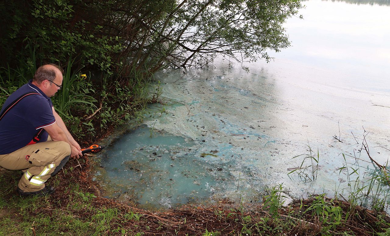 Kreis Paderborn (krpb). Fischer entdeckten am Pfingstmontag-Nachmittag eine grünlich-türkise Substanz auf dem Rathsee bei Delbrück-Bentfeld, bemerkten zeitgleich den Geruch von Schwefel sowie Ammoniak und informierten folgerichtig die Feuerwehr.
