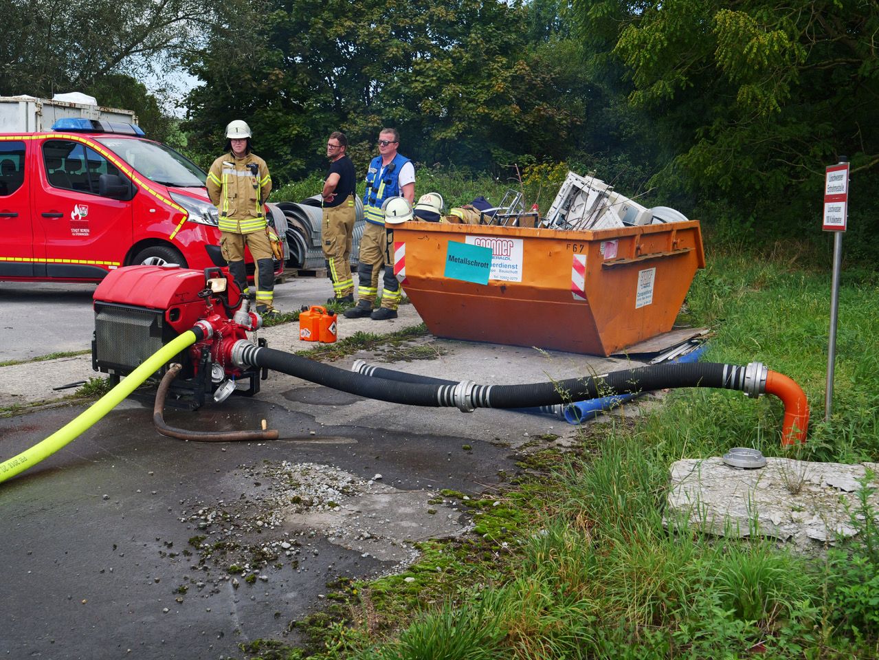 Nach einer ersten Lageerkundung, bei der auch Wärmebildkameras eingesetzt wurden, stellte sich heraus, dass sich das Feuer tief in die eingelagerten Pellets gefressen hatte und dort schwelte. Mit Hilfe von zwei Radladern wurden die Pellets aus der verrauchten Lagerhalle ins Freie transportiert, wo sie dann abgelöscht werden. Löscharbeiten in der Halle und der Betrieb der Radlader ist nur unter Atemschutz möglich, erklärt Einsatzleiter André Braekler, stellvertretender Leiter der Feuerwehr Büren. Für die Löscharbeiten hat die Feuerwehr eine 100 Kubikmeter fassende Zisterne auf dem Betriebsgelände angezapft. Durch die große Menge eingelagerter Futtermittel-Pellets zogen sich die Löscharbeiten über rund sechs Stunden bis in den Nachmittag des Sonntags hin.