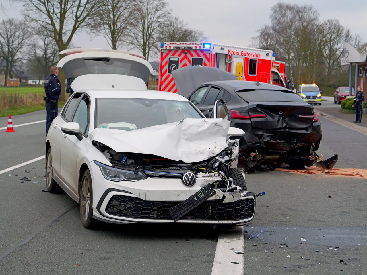 Bei einem heftigen Auffahrunfall auf der Rietberger Straße (B64) in Höhe Westenholz wurden am Dienstagvormittag drei Menschen schwer verletzt. Der Unfall ereignete sich gegen 11 Uhr in Höhe der Avia-Tankstelle.