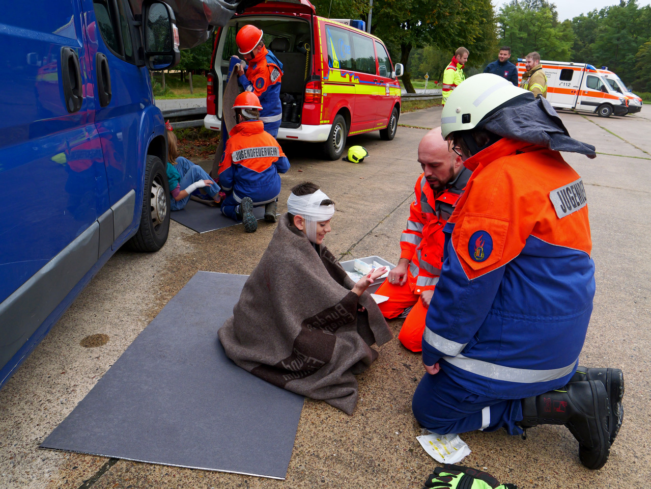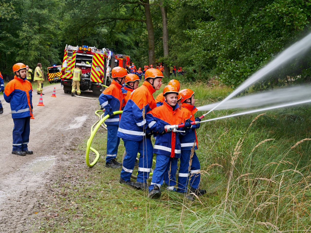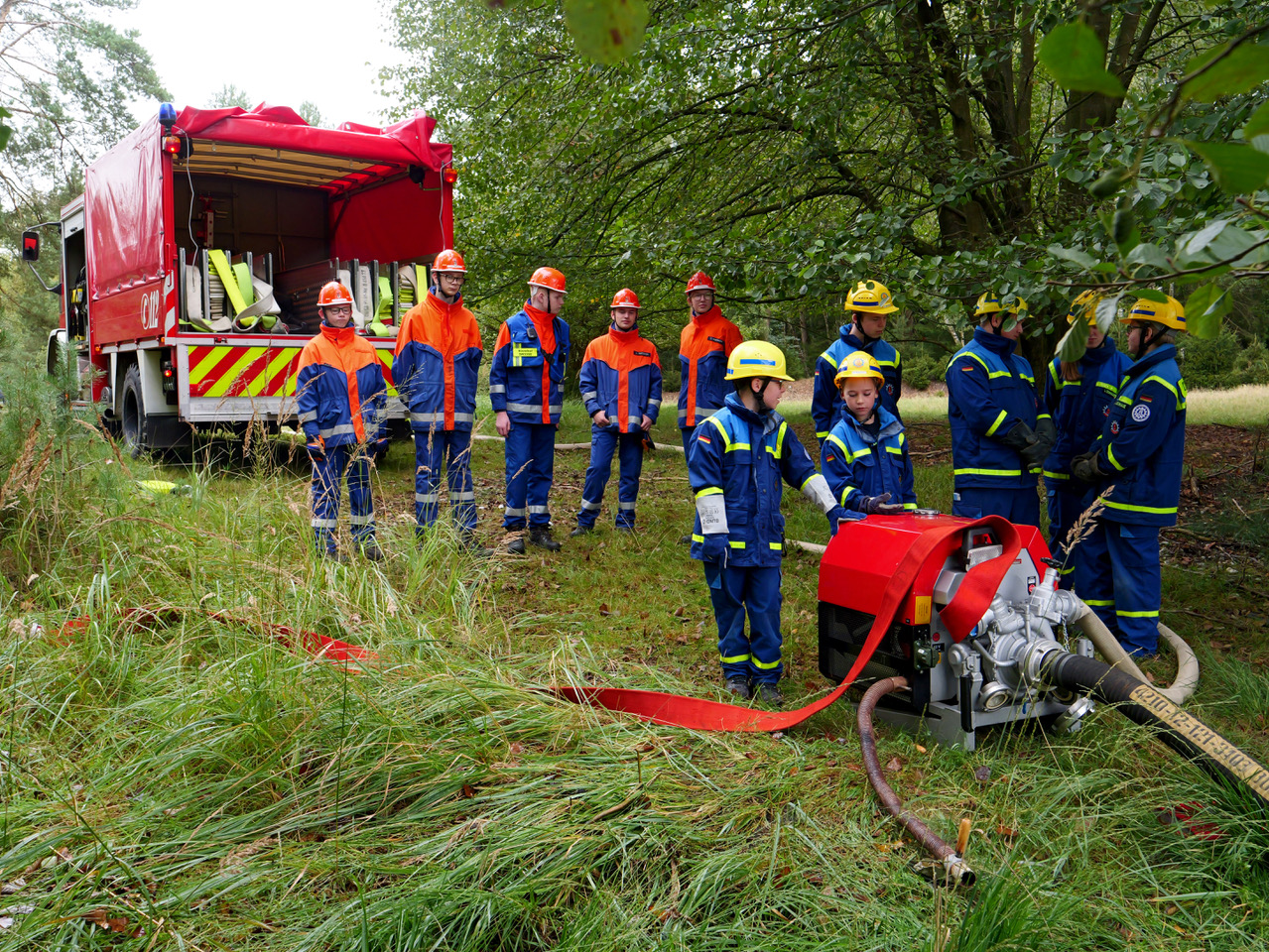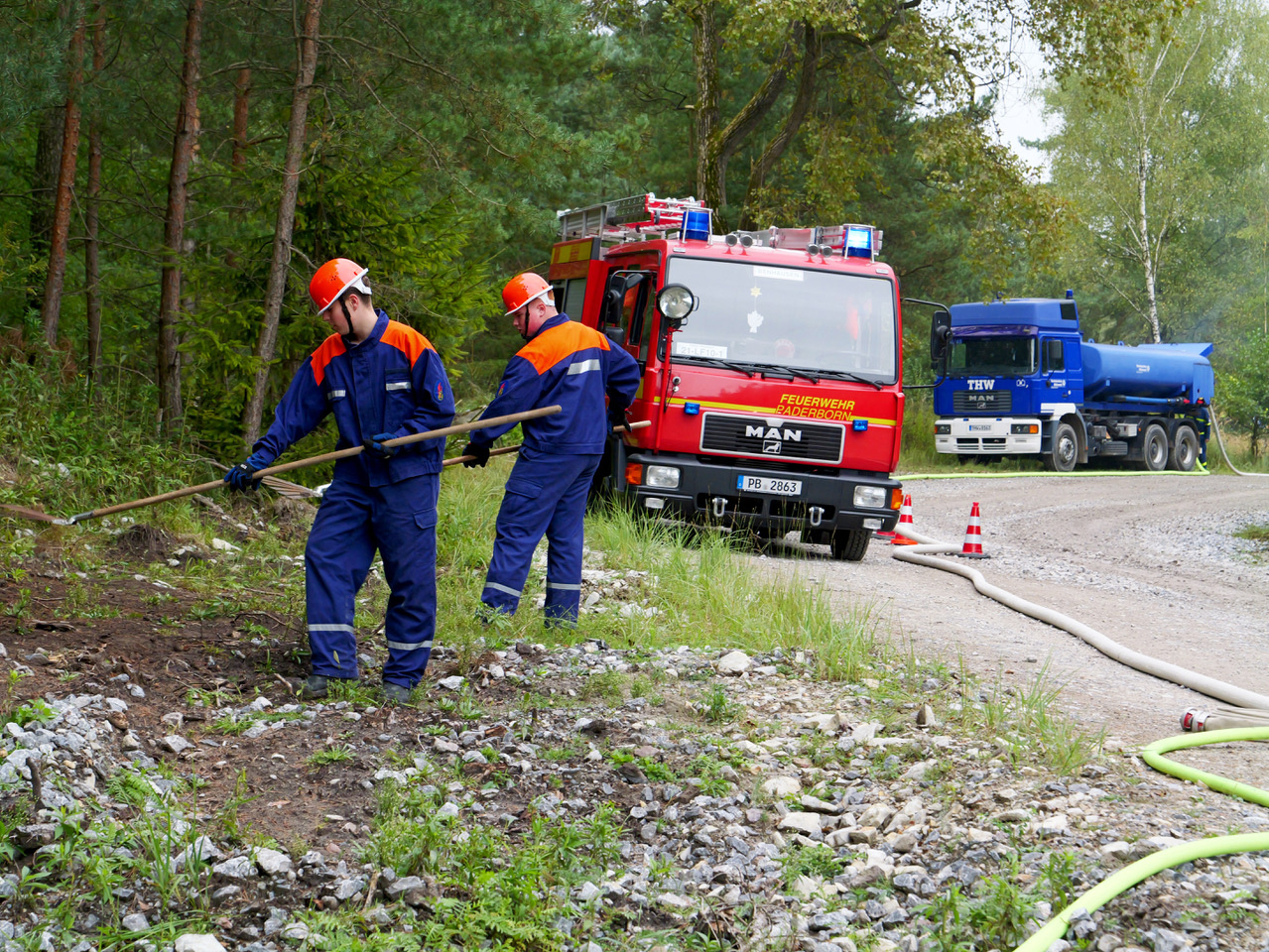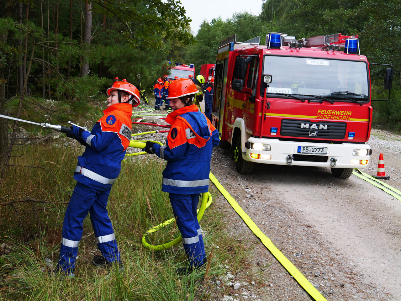 Rund 170 Mitglieder der Jugendfeuerwehren aus dem Kreis Paderborn übten zum ersten Mal gemeinsam mit der Jugend des Technischen Hilfswerks (THW) aus Paderborn einen Großeinsatz am Rande des Truppenübungsplatzes Senne.