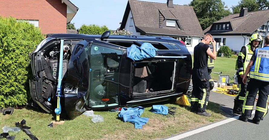 Feuerwehr muss 86-Jährigen in Hövelhof-Espeln aus seinem Auto befreien.