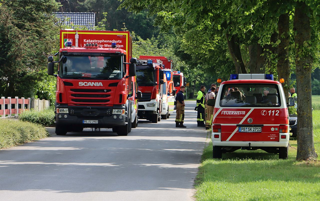 Böse Überraschung im Paket: Chemikalien sorgen für Großeinsatz. Praxis in Mantinghausen erhält gefährliche Substanzen. Alle ABC-Einheiten aus dem Kreis Paderborn im Einsatz.