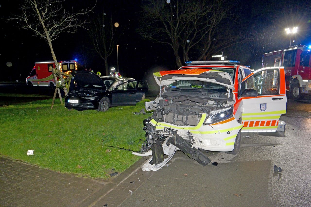 Bei einem Zusammenstoß eines Notarzteinsatzfahrzeugs mit einem VW Golf in Büren sind am Mittwochabend drei Menschen verletzt worden.