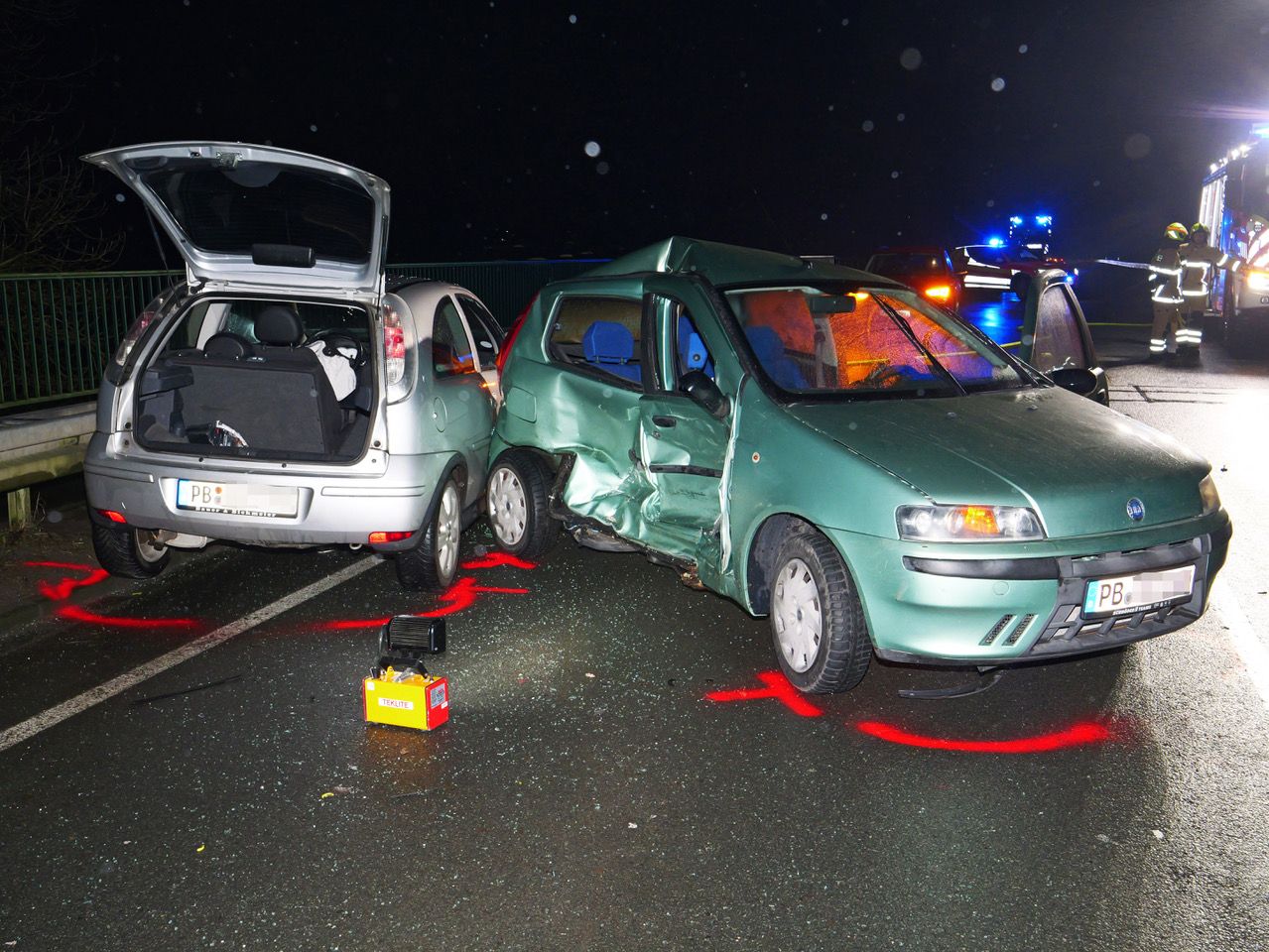 Zum zweiten Mal innerhalb weniger Tage kollidierten in Paderborn zwei Personenwagen im Begegnungsverkehr. Am Montagabend stießen auf dem George-Marshall-Ring (Kreisstraße 29) im Osten der Stadt zwei Personenwagen auf der Straßenbrücke über die Bahnstrecke zusammen. Bei der Kollision wurden beide Fahrer schwer verletzt.