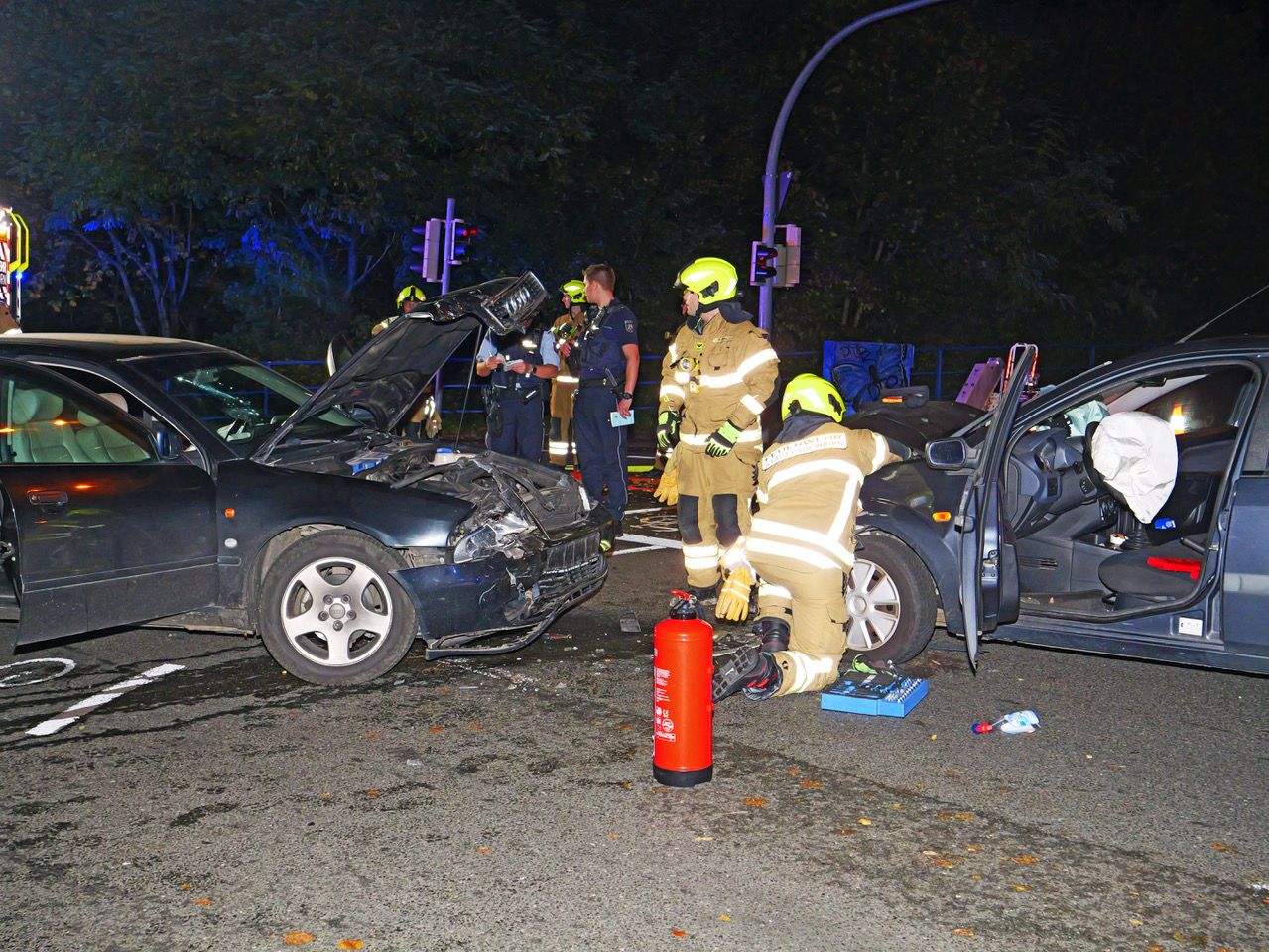 Bei einem schweren Verkehrsunfall auf der Nordstraße in Höhe der Einmündung Dr.-Rörig-Damm kollidierten am späten Samstagabend drei Personenwagen, die mit insgesamt acht Personen besetzt waren. Drei von ihnen zogen sich beim Zusammenstoß leichte Verletzungen zu.
