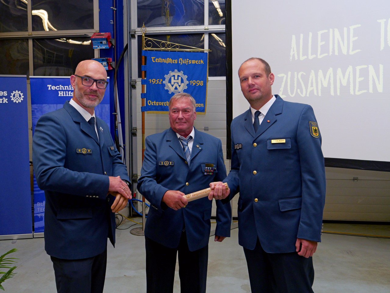 Nach 24 Jahren an der Spitze des Ortsverbandes Paderborn des Technischen Hilfswerks (THW) in Paderborn hat Hartmut Dahm den Staffelstab des Ortsbeauftragten weitergegeben an Christoph Wiegand, den bisherigen Stellvertreter.