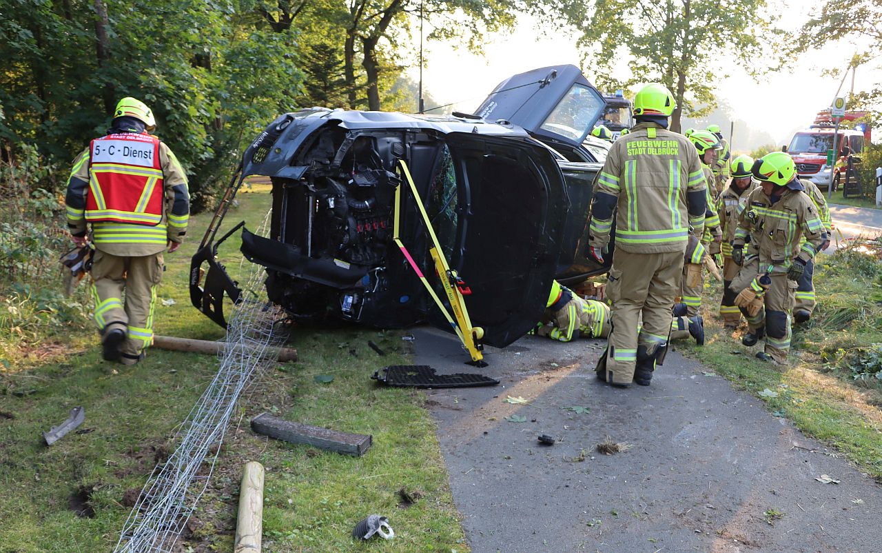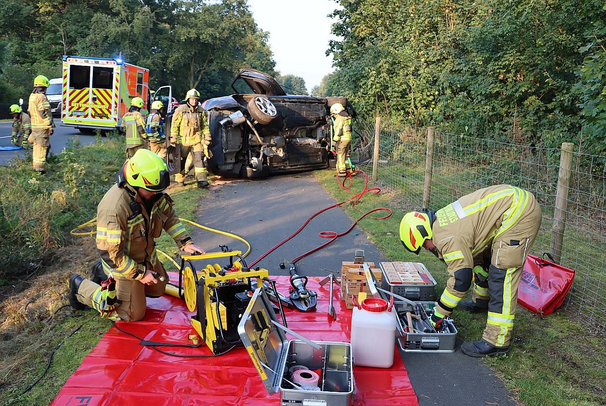 28-Jähriger bei Alleinunfall in Delbrück-Bentfeld schwer verletzt. Radfahrer wird von schleuderndem Auto nur knapp verfehlt.