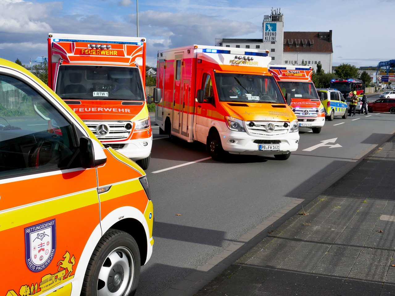 Bei einem Verkehrsunfall auf dem Frankfurter Weg ist am Sonntagnachmittag eine dreiköpfige Familie verletzt worden. Der Unfall ereignete sich gegen 16 Uhr, als eine Autofahrerin von einem Parkplatz über zwei Fahrspuren hinweg nach links in Richtung Salzkottener Straße abbiegen wollte.