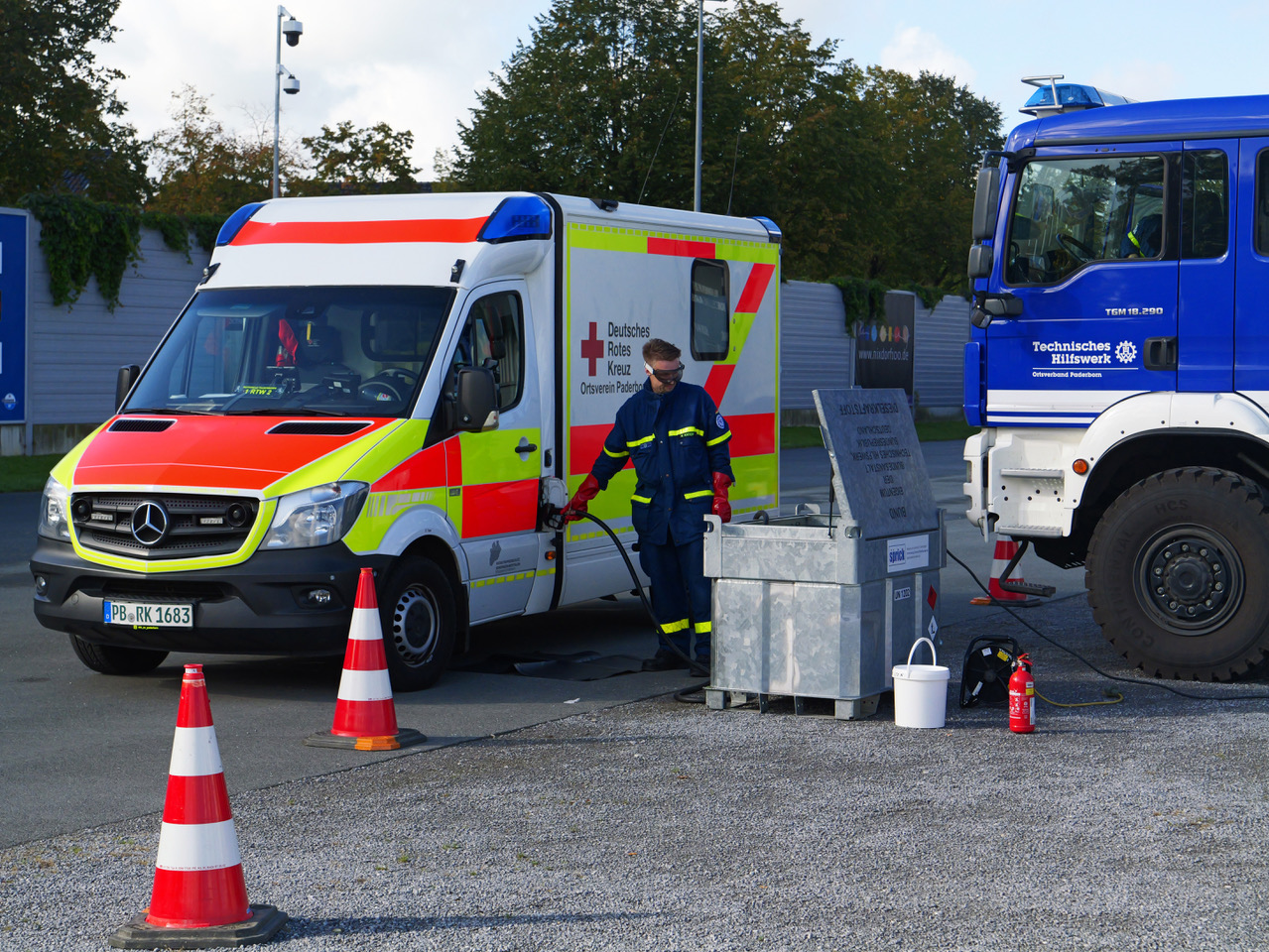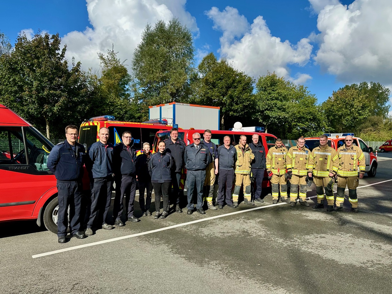 Zu einem Wohnungsbrand in einem Gebäude mit vermissten Personen rückten die ehrenamtlichen Einheiten Marienloh, Benhausen und Neuenbeken der Feuerwehr Paderborn aus. Vor Ort entpuppte sich das verrauchte Anwesen als präpariertes Übungsszenario.